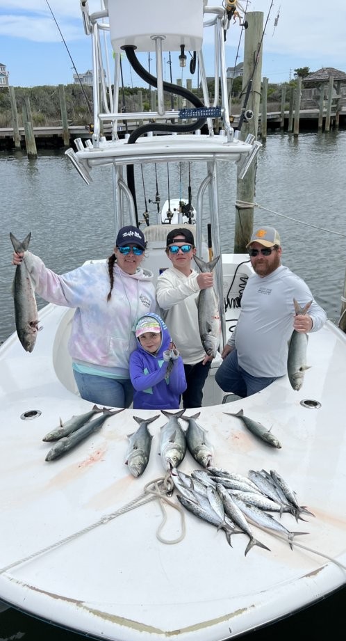 We stayed in Hatteras for the week and went out 2 times with Captain Rolo. The first trip we caught 30+ blue fish. Second trip we caught 3 keeper puppy drum and released one that was over the slot. Excellent Captain knows his stuff and put us on fish every time. Very good with kids to my son loved him. I would highly recommend his services.